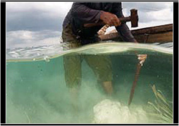 Don't drag the reef into this. Use reef mooring buoys when available. Or, anchor in sandy areas away from coral and sea grasses so that the anchor and chain do not drag on nearby corals or tear-up sea grass beds. Once broken, corals can take decades or longer to redevelop, and a damaged reef is less able to provide food, habitat and shoreline protection.